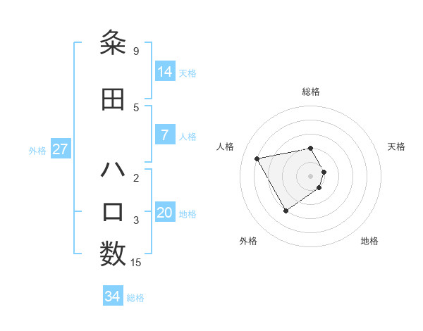 粂田 ハロ数さんを姓名の画数から五運を鑑定