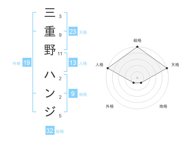 三重野 ハンジさんを姓名の画数から五運を鑑定