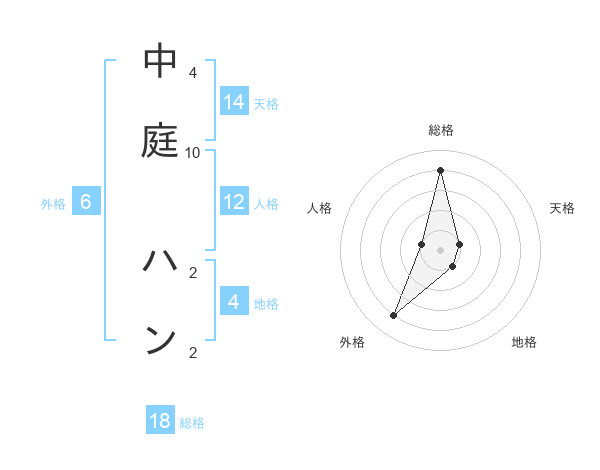 中庭 ハンさんの総格は18画の4点!
