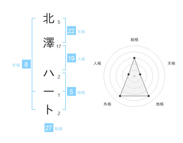 北澤 ハートさんを姓名の画数から五運を鑑定