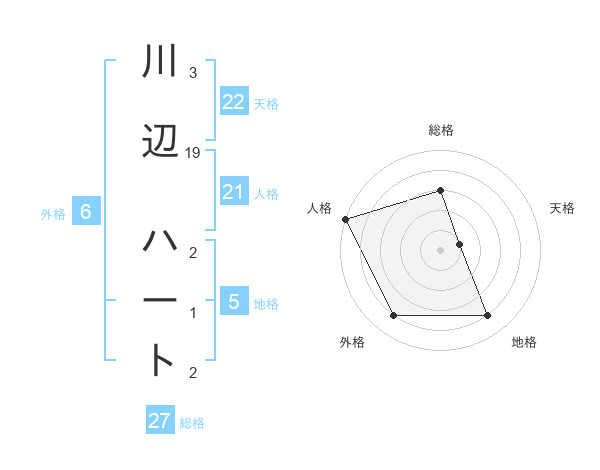 川辺 ハートさんを姓名の画数から五運を鑑定