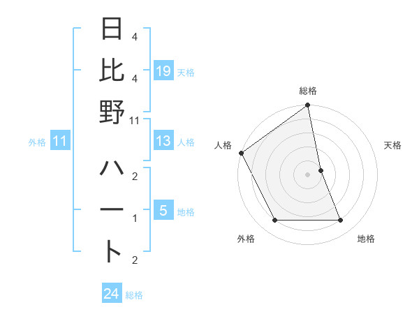 日比野 ハートさんを姓名の画数から五運を鑑定