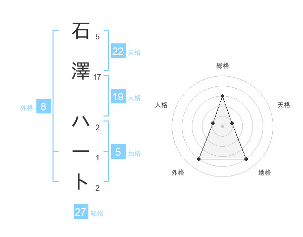 石澤 ハートさんを姓名の画数から五運を鑑定