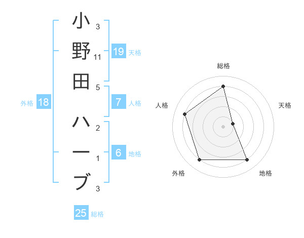 小野田 ハーブさんを姓名の画数から五運を鑑定