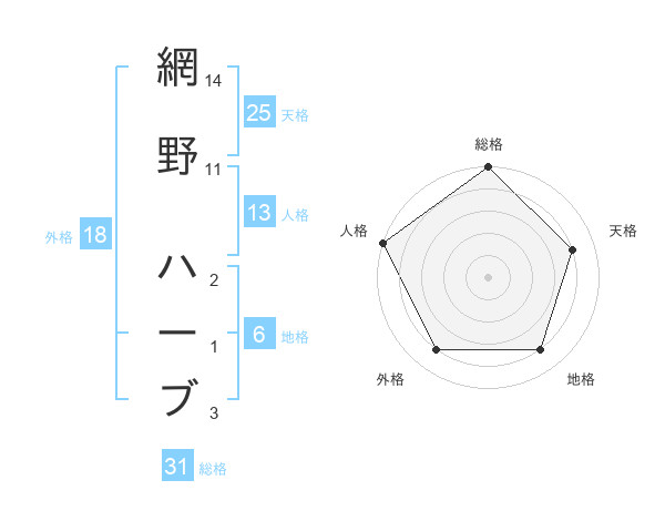 網野 ハーブさんを姓名の画数から五運を鑑定