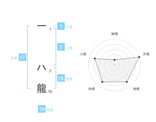 一 ハ龍さんを姓名の画数から五運を鑑定