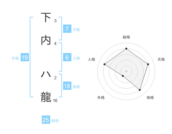 下内 ハ龍さんを姓名の画数から五運を鑑定