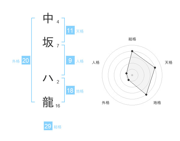 中坂 ハ龍さんを姓名の画数から五運を鑑定