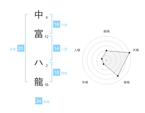中富 ハ龍さんの天格は16画の5点!