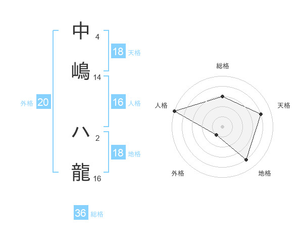 中嶋 ハ龍さんの天格は18画の4点!