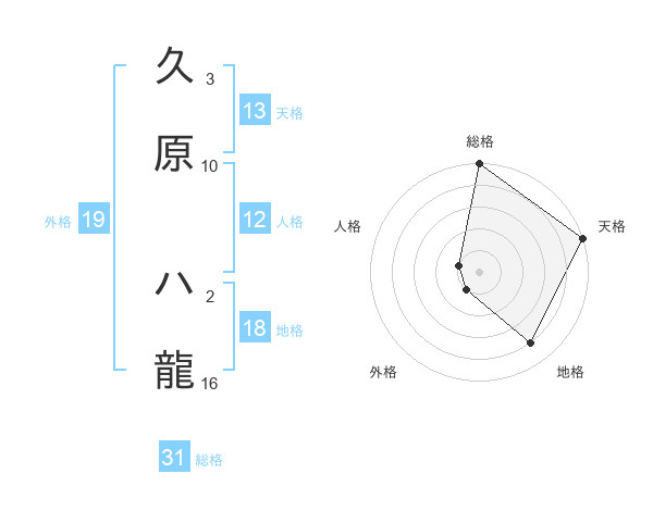 久原 ハ龍さんの総格は31画の5点!