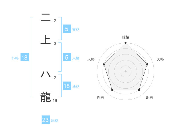 二上 ハ龍さんを姓名の画数から五運を鑑定