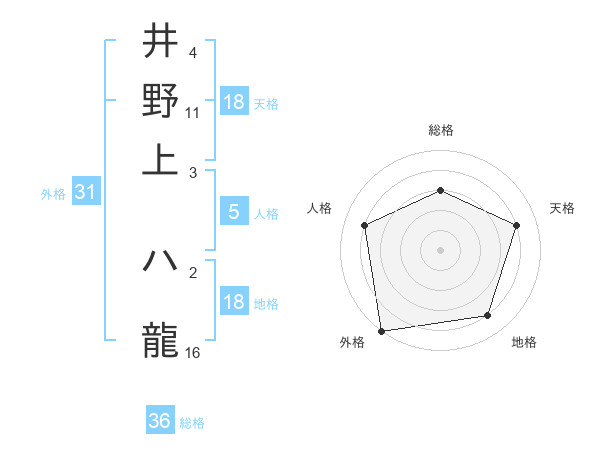 井野上 ハ龍さんを姓名の画数から五運を鑑定