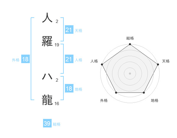 人羅 ハ龍さんを姓名の画数から五運を鑑定