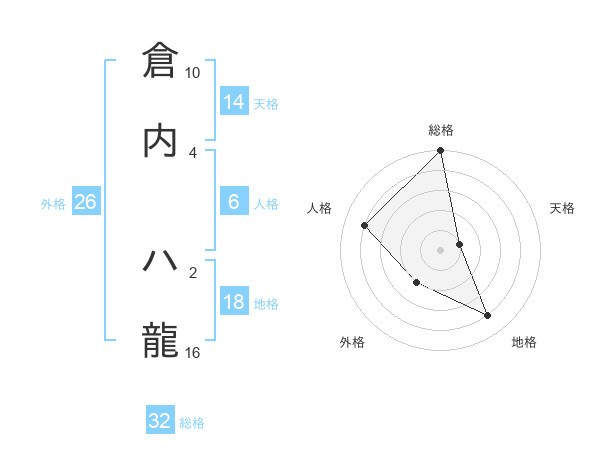倉内 ハ龍さんを姓名の画数から五運を鑑定