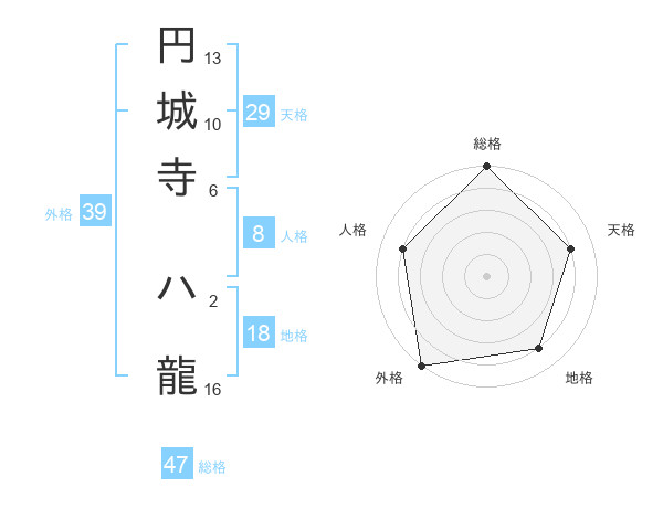 円城寺 ハ龍さんを姓名の画数から五運を鑑定