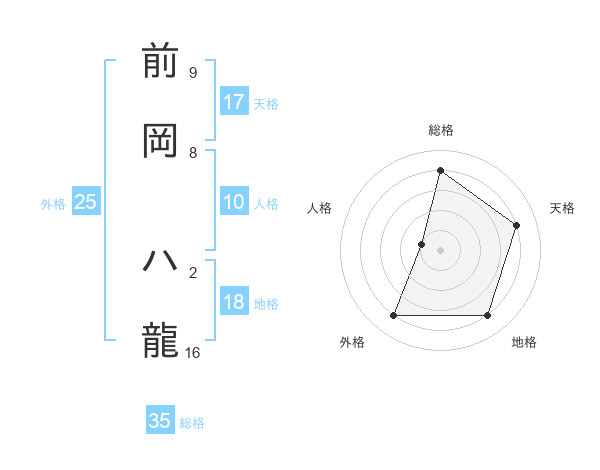 前岡 ハ龍さんの総格は35画の4点!