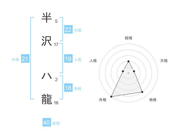 半沢 ハ龍さんを姓名の画数から五運を鑑定