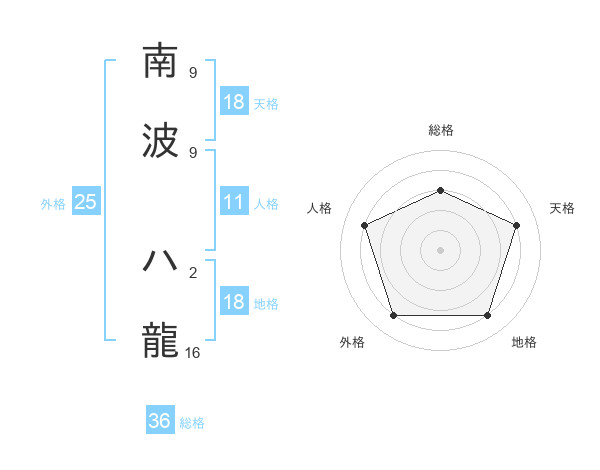 南波 ハ龍さんの天格は18画の4点!