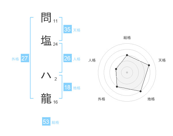 問塩 ハ龍さんを姓名の画数から五運を鑑定