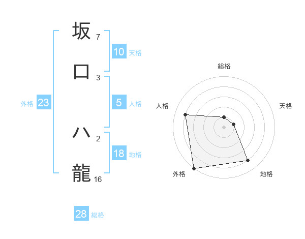 坂口 ハ龍さんを姓名の画数から五運を鑑定