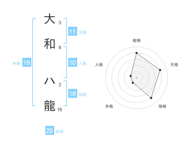 大和 ハ龍さんを姓名の画数から五運を鑑定