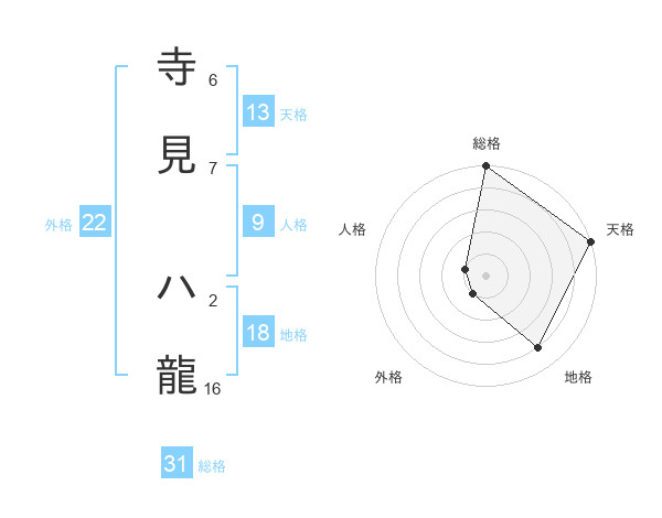 寺見 ハ龍さんの総格は31画の5点!