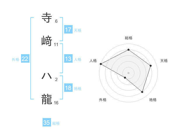 寺﨑 ハ龍さんの総格は35画の4点!