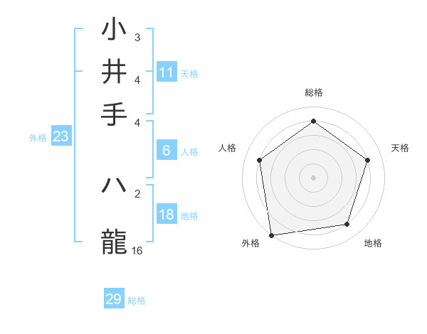 小井手 ハ龍さんを姓名の画数から五運を鑑定