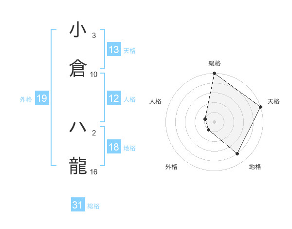 小倉 ハ龍さんを姓名の画数から五運を鑑定