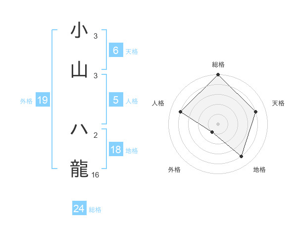 小山 ハ龍さんを姓名の画数から五運を鑑定