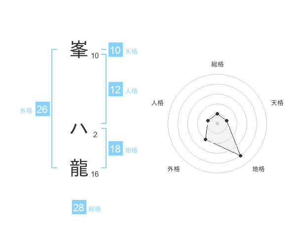 峯 ハ龍さんを姓名の画数から五運を鑑定