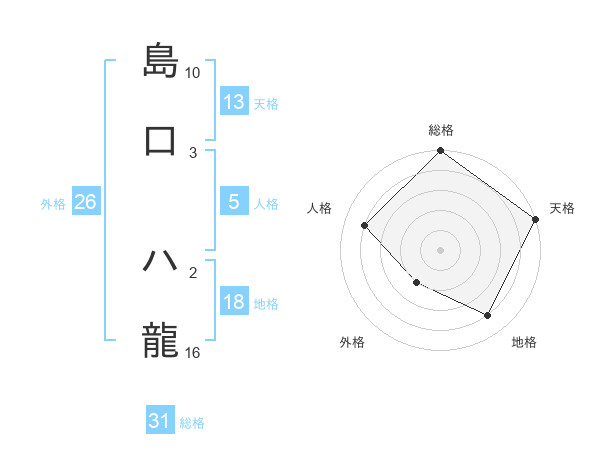 島口 ハ龍さんの総格は31画の5点!