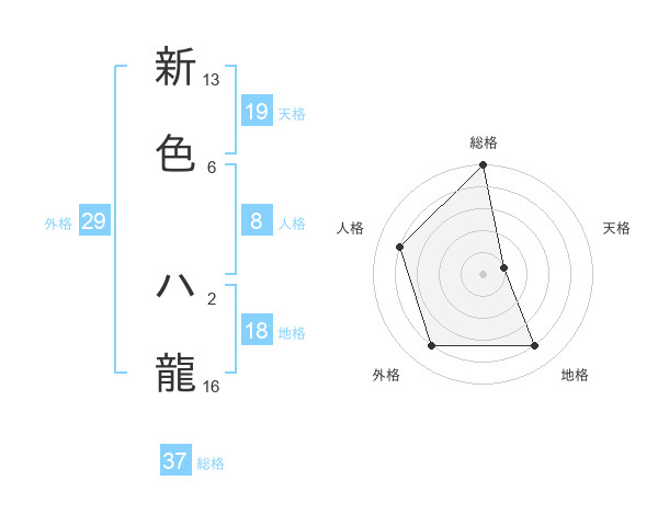 新色 ハ龍さんを姓名の画数から五運を鑑定