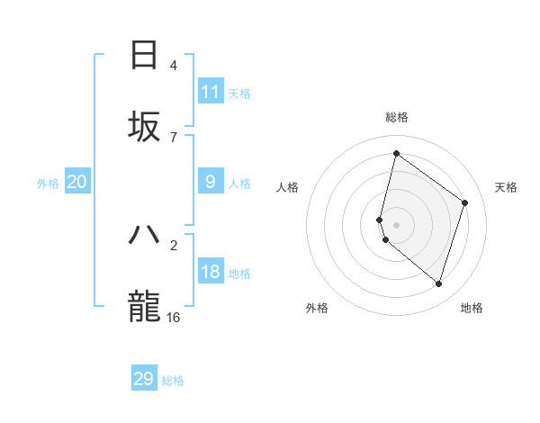 日坂 ハ龍さんの総格は29画の4点!