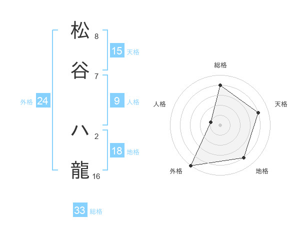 松谷 ハ龍さんを姓名の画数から五運を鑑定