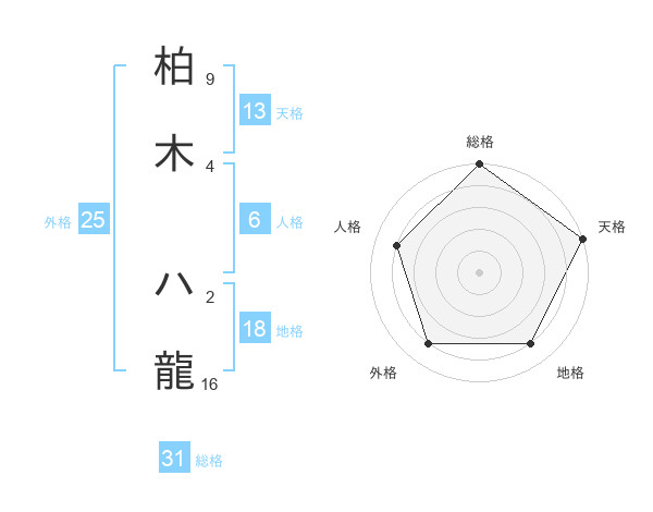 柏木 ハ龍さんの総格は31画の5点!