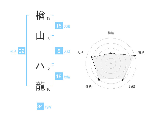 楢山 ハ龍さんを姓名の画数から五運を鑑定