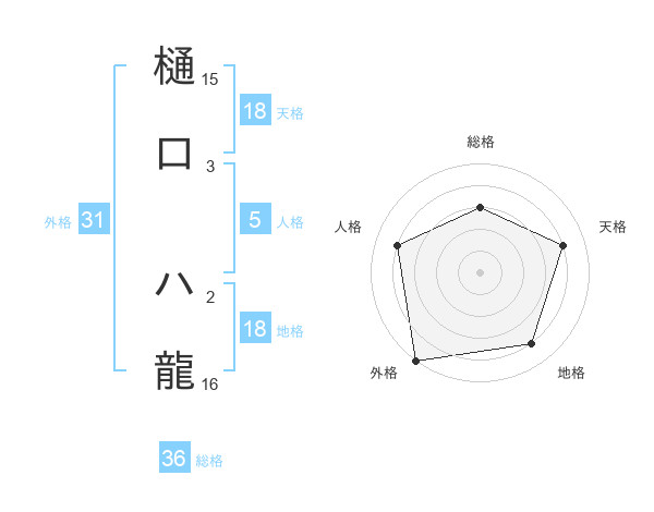 樋口 ハ龍さんの外格は31画の5点!