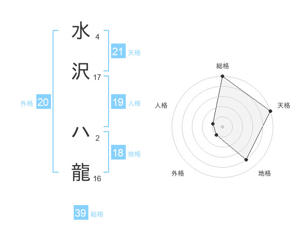 水沢 ハ龍さんの天格は21画の5点!