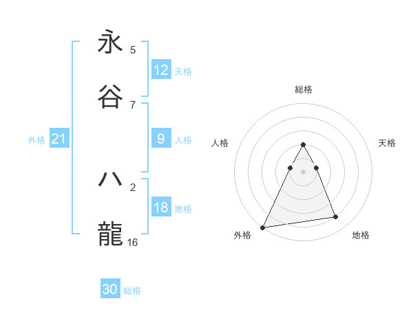 永谷 ハ龍さんを姓名の画数から五運を鑑定