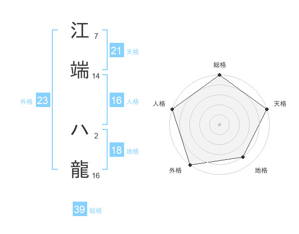 江端 ハ龍さんの総格は39画の5点!