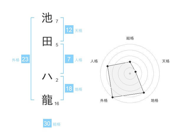池田 ハ龍さんを姓名の画数から五運を鑑定