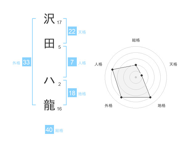 沢田 ハ龍さんの総格は40画の2点!