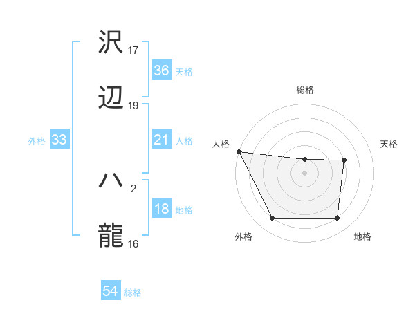 沢辺 ハ龍さんの総格は54画の1点!