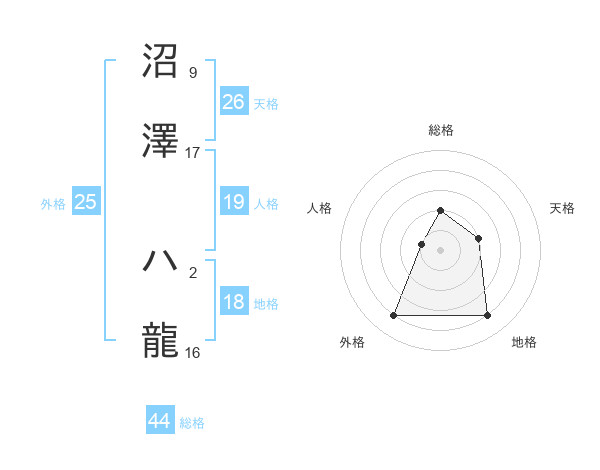 沼澤 ハ龍さんを姓名の画数から五運を鑑定