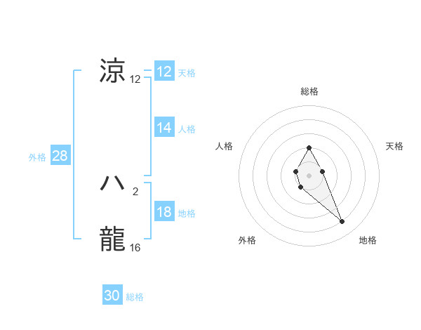 涼 ハ龍さんの総格は30画の2点!