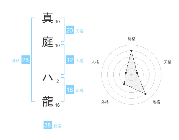 真庭 ハ龍さんの天格は20画の1点!