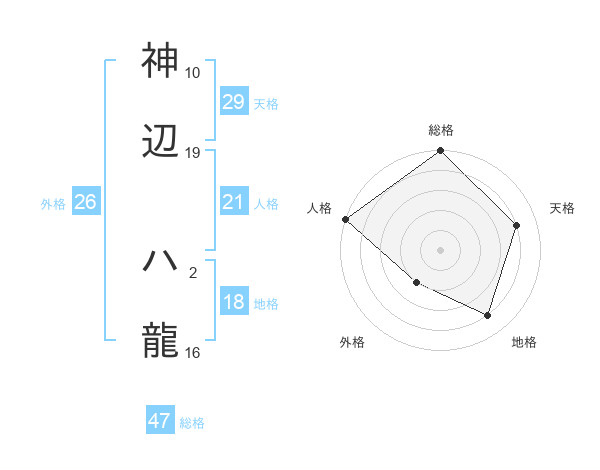 神辺 ハ龍さんを姓名の画数から五運を鑑定