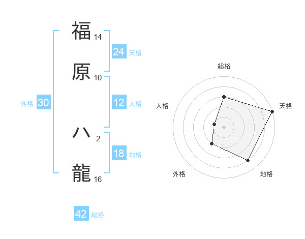 福原 ハ龍さんの総格は42画の3点!